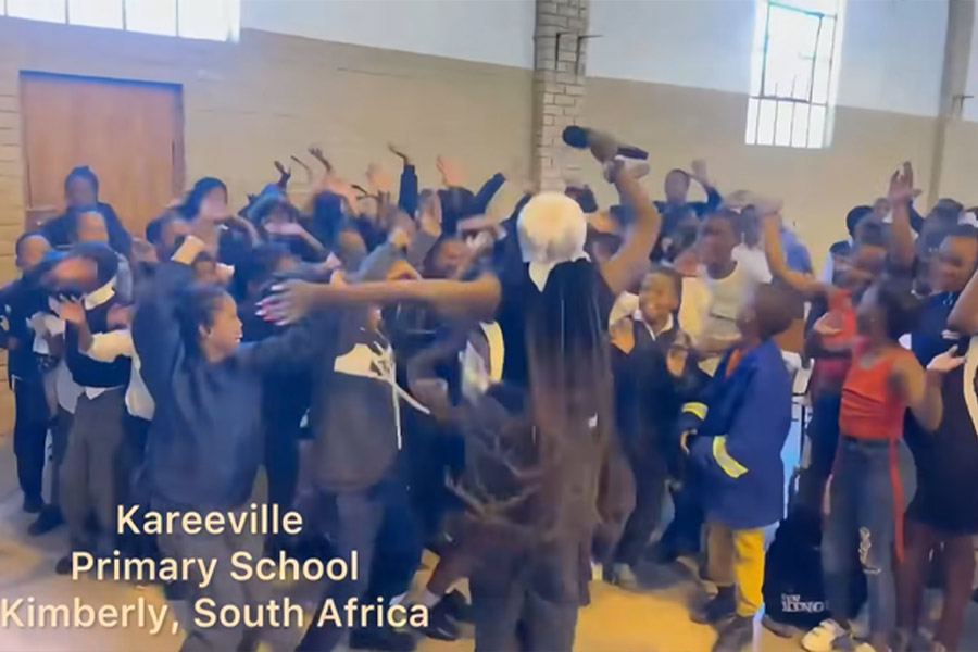 At Kareeville Primary School in Kimberley, South Africa, hundreds of learners are bursting with excitement. Dressed smartly in their school uniforms, they jump and dance in the school hall to the infectious rhythm of Emmie Deebo’s hit song Sheri Banana.
